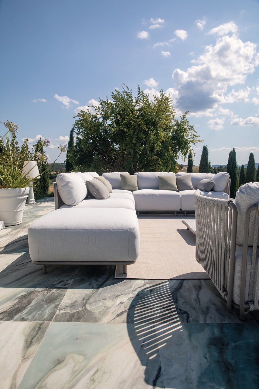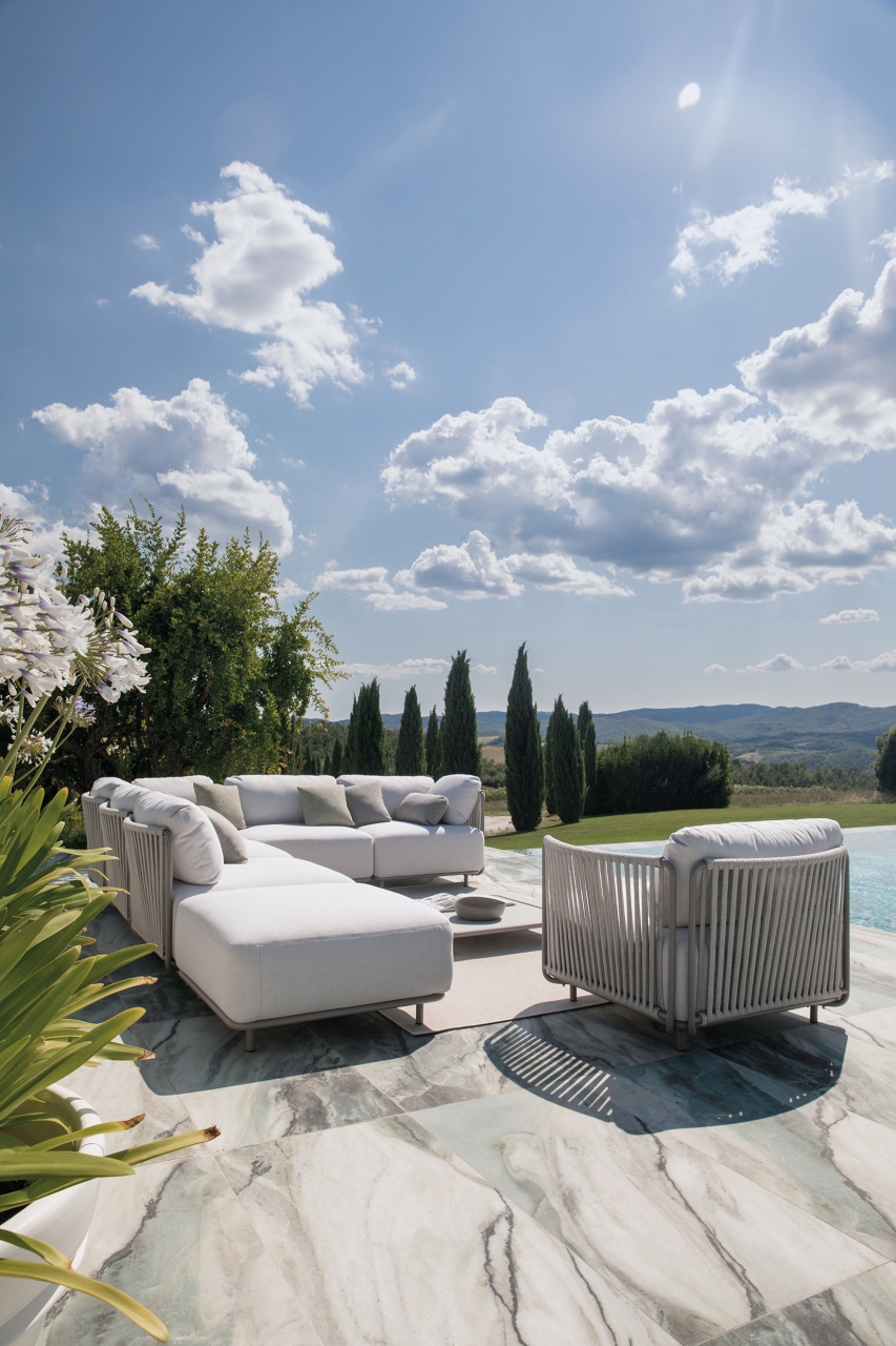 Oggi il design outdoor si afferma come naturale estensione dell’indoor, uno spazio da vivere con la stessa attenzione estetica e sensoriale. I confini tra interno ed esterno si assottigliano, dando vita a un progetto in continua evoluzione, che sperimenta materiali e lavorazioni per definire un linguaggio fluido e contemporaneo.