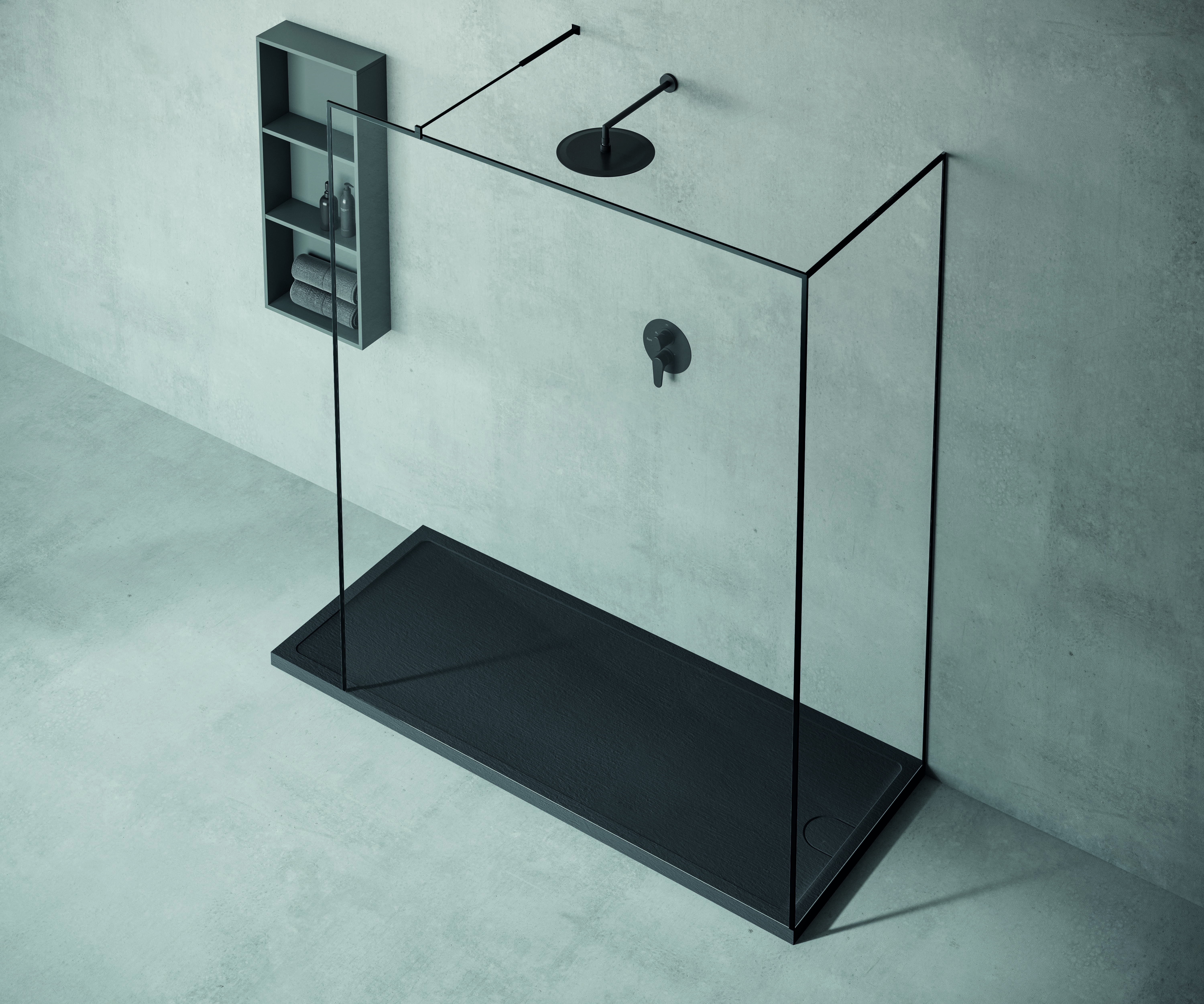KOU è un piatto doccia di spessore minimo che si distingue per le sue forme curve, che caratterizzano sia il telaio che lo scarico: quest’ultimo poi offre all'utente più spazio per stare in piedi durante la doccia.