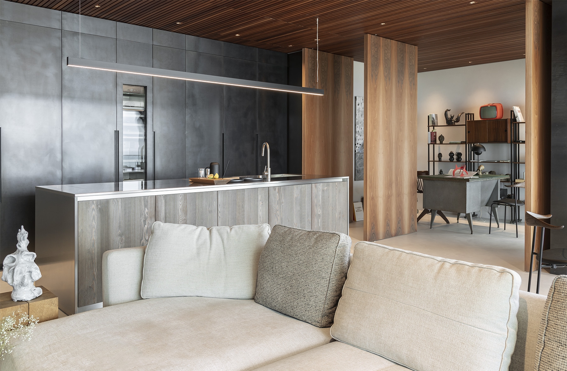 Al quarto piano di una lussuosa palazzina residenziale è stato completamente ristrutturato questo appartamento da cui si può godere di una splendida vista sulla Riviera delle Palme. Il progetto di ristrutturazione è stato affidato all’Architetto Andrea Eusebi che, per rendere ancor più particolare questo immobile, ha dedicato grandissima attenzione alla funzionalità e ai dettagli. Tra gli elementi protagonisti di questo brillante e sofisticato progetto troviamo anche tre splendide porte a bilico - movimentate con le cerniere System M+ di FritsJurgens - collocate l’una accanto all’altra per dare vita ad una vera e propria parete mobile.