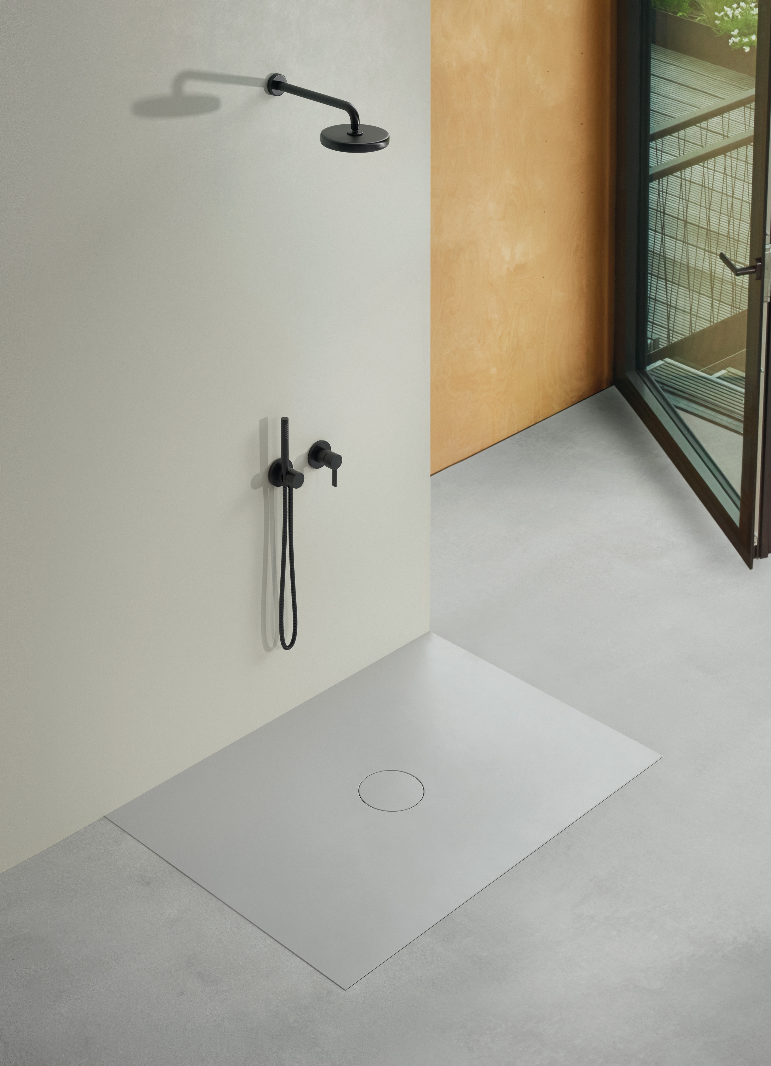 BetteAir, è il piatto doccia più sottile al mondo che si integra così perfettamente al suolo, che è difficile non percepirlo come una vera novità architettonica e funzionale per il bagno. Misura 1 cm. che corrisponde approssimativamente allo spessore di una piastrella di grande formato.
