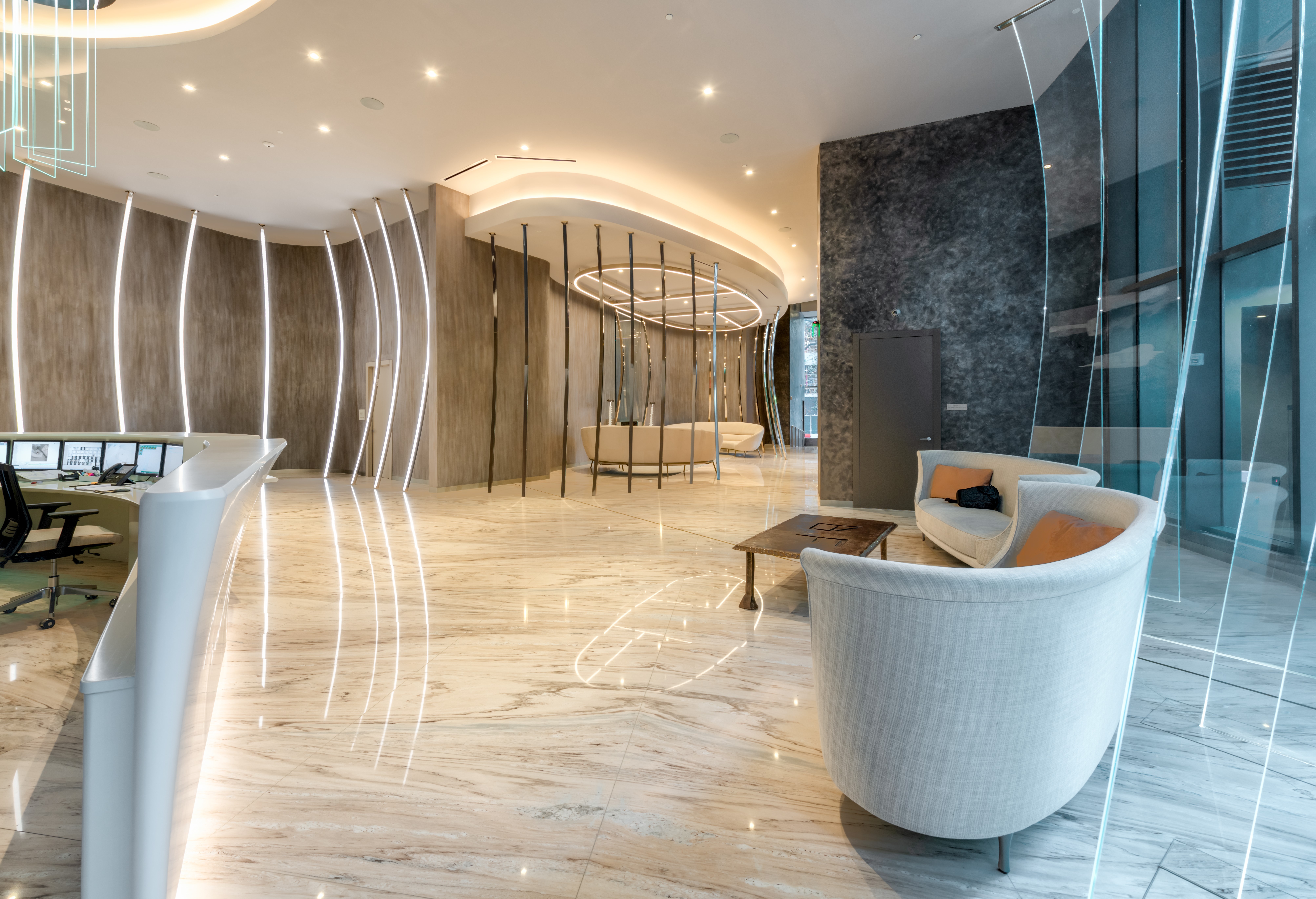 Insieme e per conto di Santo Passaia PLANIT ha realizzato il rivestimento del grande banco della reception del Brickell Flatiron, il bancone del Wine Bar al diciassettesimo piano e la piccola reception del centro fitness al sessantaquattresimo piano.